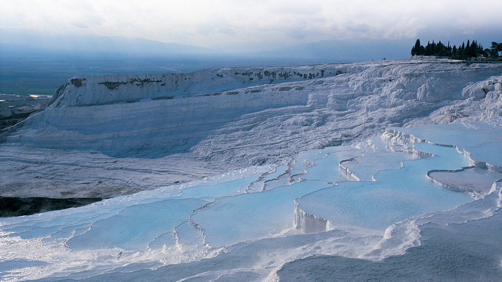 Hệ thống hồ bậc thang đá vôi nổi tiếng của Thổ Nhĩ Kỳ này được tạo thành từ nước của 17 suối nước nóng trong Pamukkale (có nghĩa là ‘lâu đài bông’). Hồ vô tận này trông thật lạnh lẽo với làn nước xanh thẳm xen giữa những bậc thang trắng như băng tuyết. Nhưng trên thực tế, nhiệt độ nước có thể lên tới 100 °C, do đó tạo nên một trải nghiệm thị giác hoàn toàn trái ngược với cảm nhận xúc giác, khiến cho Di sản thế giới được UNESCO công nhận này trở nên độc nhất vô nhị.