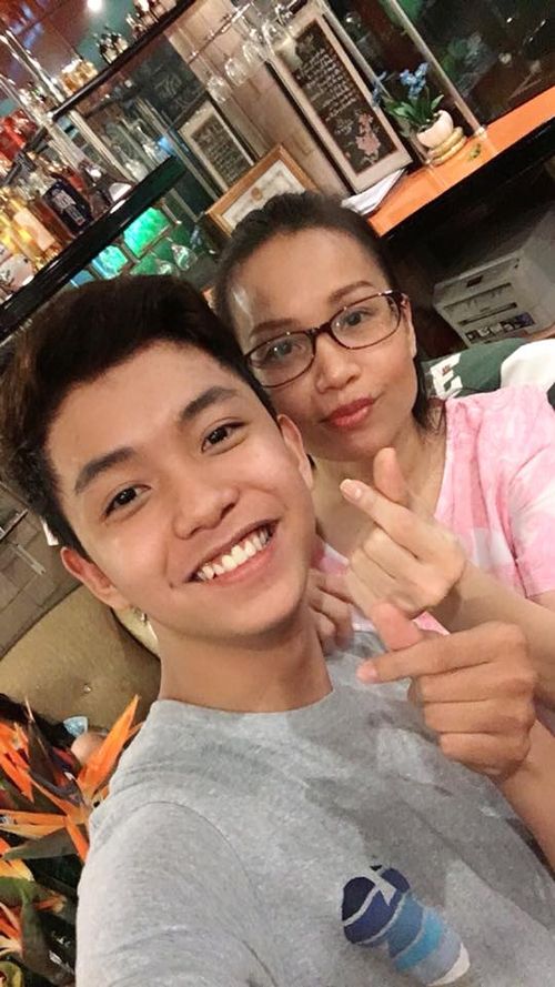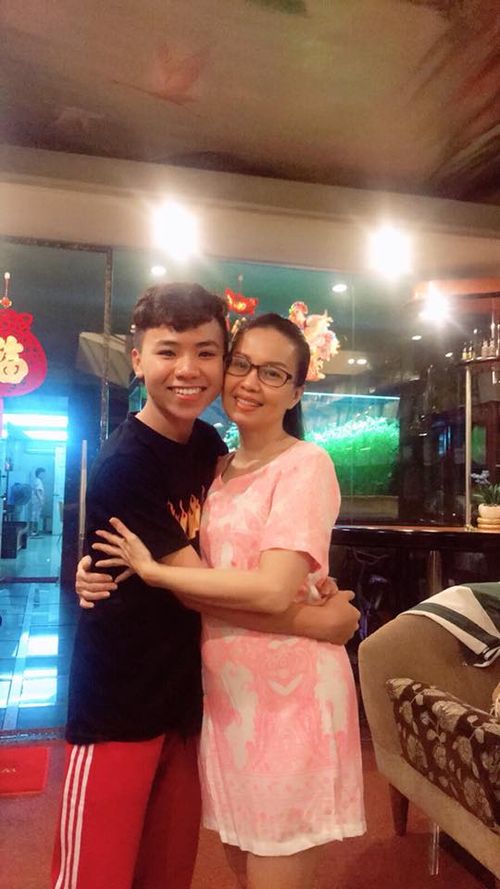 Chị Tư và học trò cưng Đoàn Minh Tài tạo dáng “xì-tin”.
