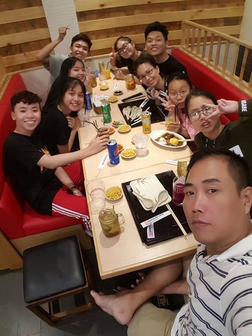 Dàn thí sinh Giọng hát Việt nhí cùng cả gia đình HLV Cẩm Ly tụ họp ăn uống bên nhau.