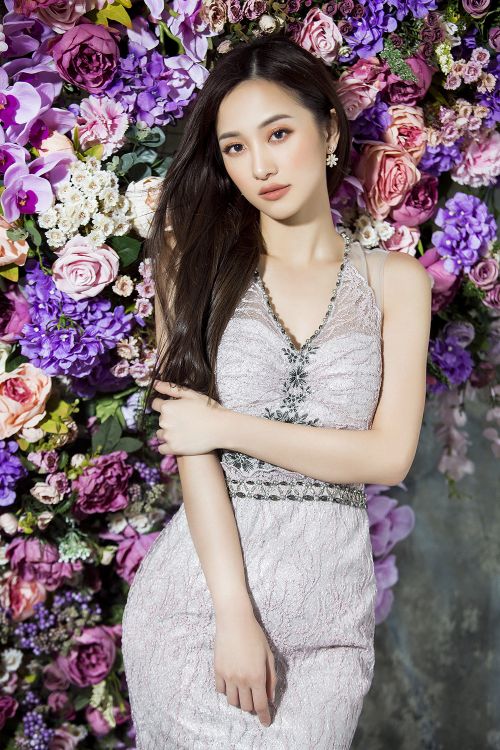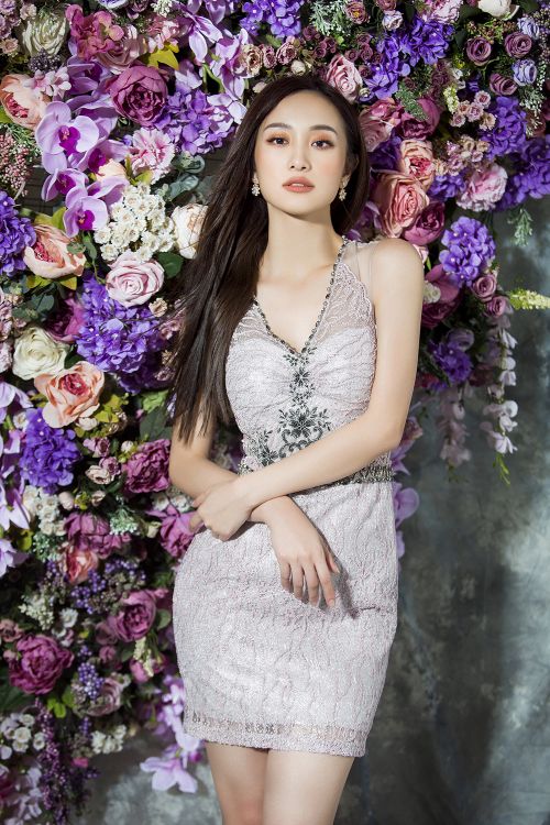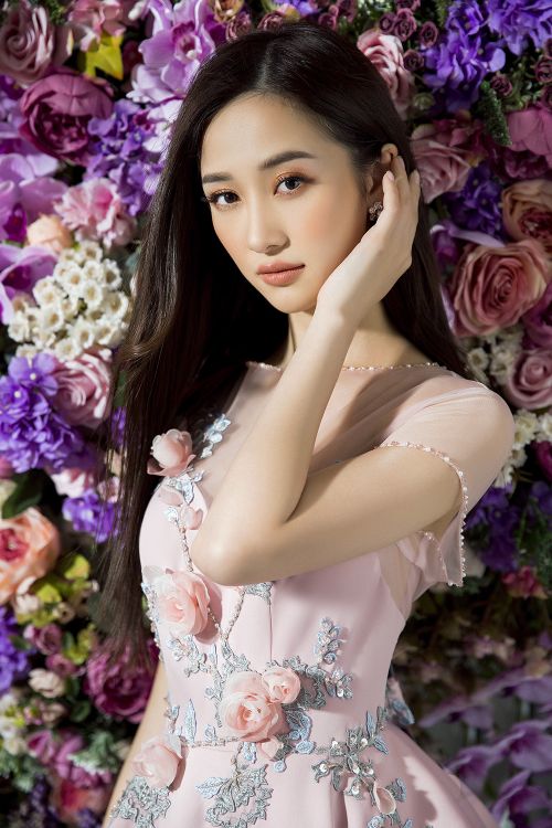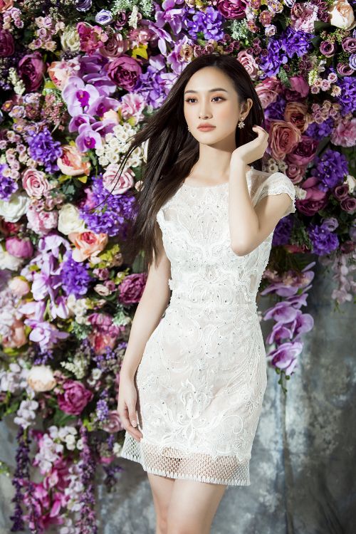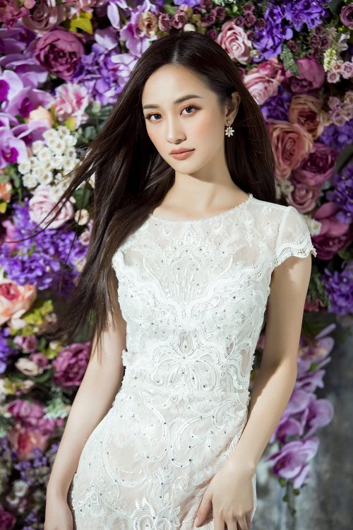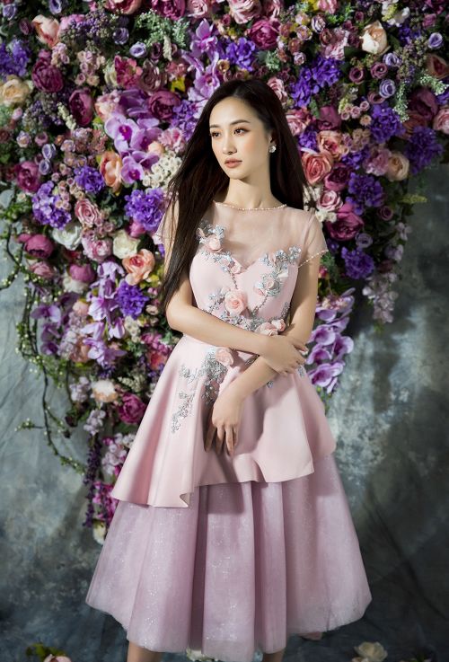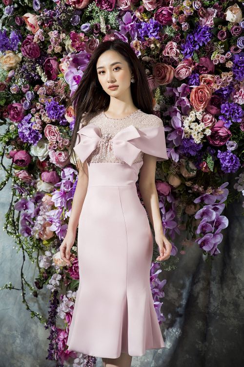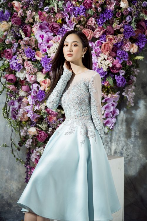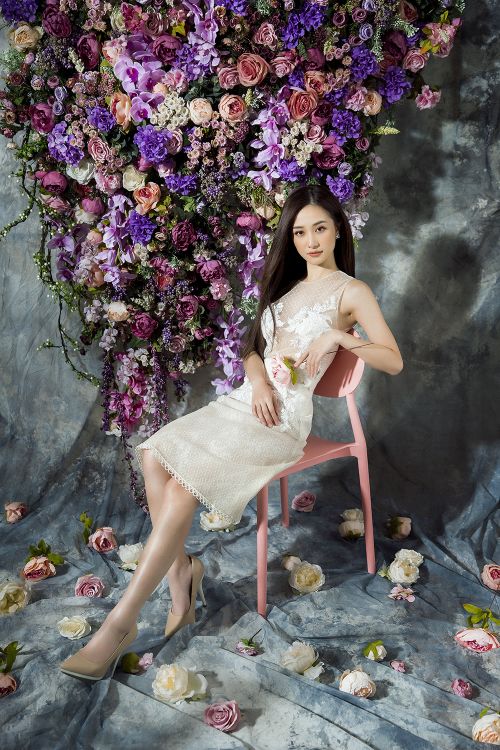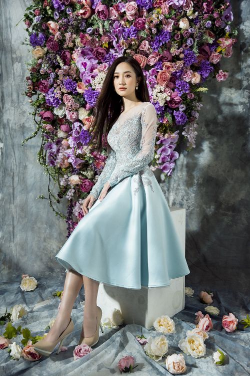 Hầu hết các trang phục đều chọn tông màu pastel như hồng thạch anh, xanh baby hoặc phối đen - trắng tối giản để tạo vẻ thanh lịch cho người đẹp sinh năm 1995. NTK Đỗ Long thể hiện kỹ thuật tinh tế của mình bằng cách ghép phối nhiều nền vải, từ vải trơn, ánh bạc, ren và xuyên thấu. Anh vẫn ưu ái với các phụ liệu kim sa, hoa vải, nơ to bản 3D nhằm tăng vẻ đẳng cấp và giá trị thời trang cho trang phục.