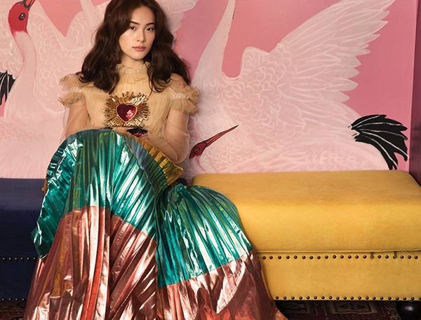 Hạ Vi cũng đã mặc mẫu đầm nhiều màu sắc này để chụp ảnh cho một tạp chí.