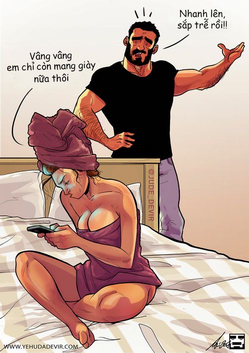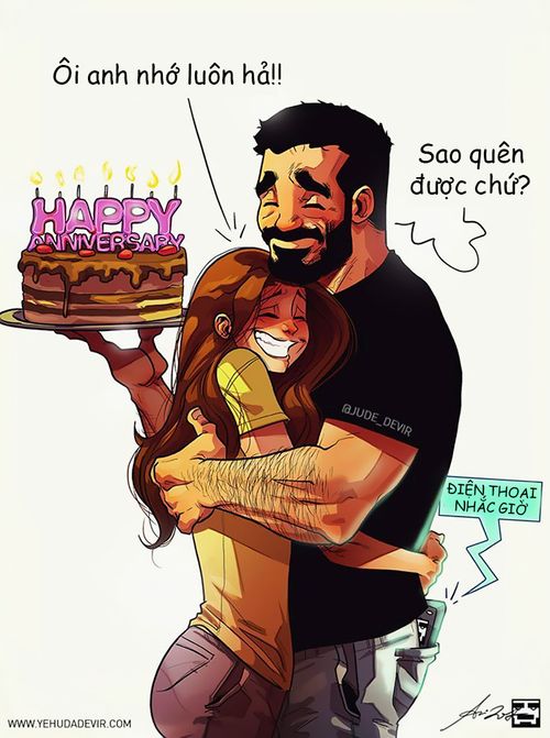 Có rất nhiều cách để một họa sĩ nổi tiếng trên mạng xã hội và vẽ cuộc sống hôn nhân cùng vợ không phải là ý tồi. Chính nhờ bộ tranh siêu thực tế và dễ thương mà họa sĩ Yehuda Adi Devir (tốt nghiệp ngành Truyền thông tại Học viện Thiết kế và Nghệ thuật tại Bezel, thành phố Jerusalem, Israel) vẽ nhằm thể hiện tình cảm với vợ, mà anh đã trở thành cái tên được tìm kiếm rất nhiều trên mạng xã hội.
