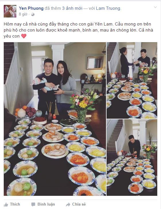 Yến Phương chia sẻ hình ảnh tiệc đầy tháng của con gái trên trang cá nhân.